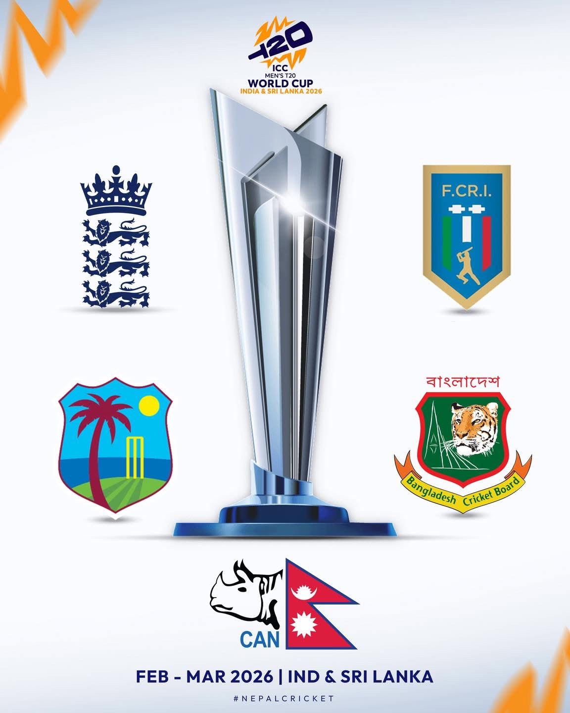 टी–२० विश्वकप : नेपाल समूह ‘सी’ मा, पहिलो खेल फेब्रुअरी ८ मा इंग्ल्यान्डसँग
