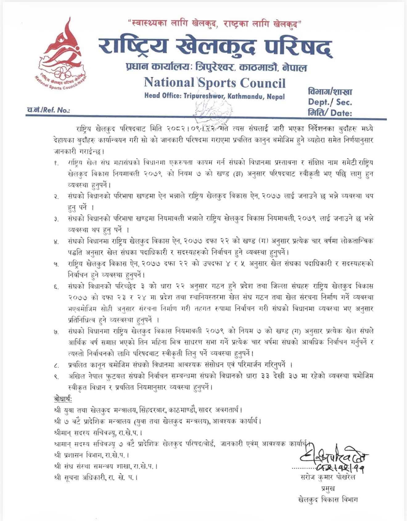 बुधबार जारी गरिएको आधिकारिक पत्रअनुसार राखेपले खेलकुद विकास ऐन, २०७७ तथा राष्ट्रिय खेलकुद विकास नियमावली, २०७९ को प्रावधानअनुसार कारबाही गर्दै एन्फामाथि निलम्बनको निर्णय गरेको हो।