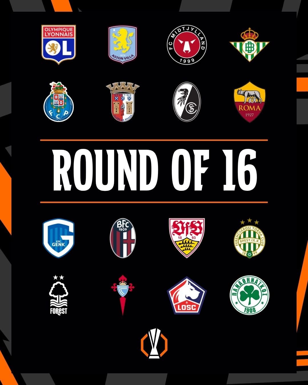 यसअघि नै लिग चरणको समाप्तीमा शीर्ष आठमा रहेर लियोन, एस्टन भिल्ला, मिडट्जल्यान्ड, रिेयल बेटिस, पोर्टो, ब्राग, फ्रेबर्ग र रोमा अन्तिम १६ मा पुगिसकेका छन् ।